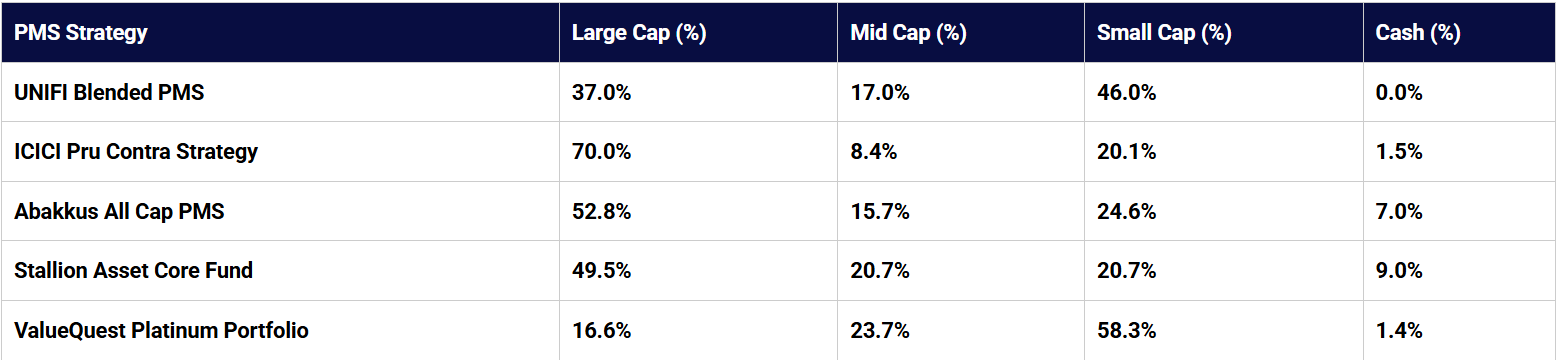 This comparison highlights which PMS strategies have consistently outperformed, how they allocate capital across market segments, and what distinguishes top-performing portfolios from the rest.